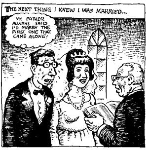 In 1964, Crumb lost his virginity to Dana Morgan, who he married later in the year. They honeymooned in Europe for six months, while Crumb continued to mail in his illustrations for American Greetings.